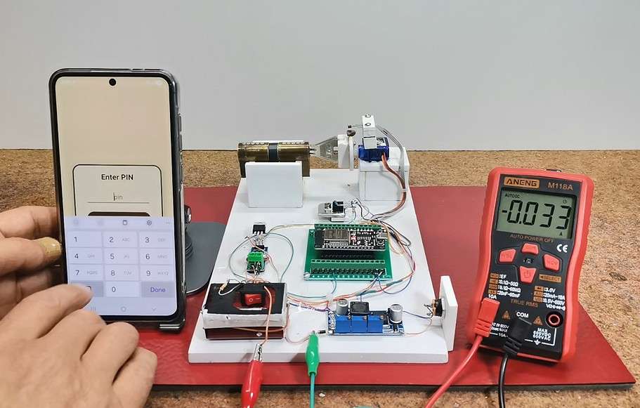 Next comes the most interesting part, and that is how this device behaves in approximately real conditions. I say approximately because what is missing here is the locking/unlocking mechanism that is mounted inside the door. However, today's locks are very precisely made so that only a little more force is needed to move that mechanism. Also, let's not forget that the final product would use a servo that is many times stronger and of higher quality than this $1 servo.
