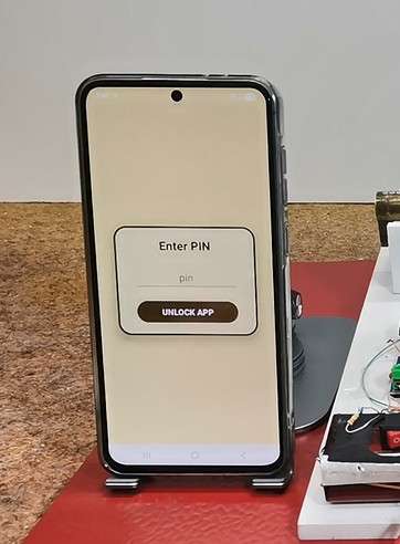 For access control and password entry, I use a smartphone with an Android application, which by the way is my first Android application. It probably could have been done much more professionally, but that wasn't my primary goal in this case, but rather a way to have full control over the lock. When activating the application, a field for entering a pin appears, which is the simplest possible protection.