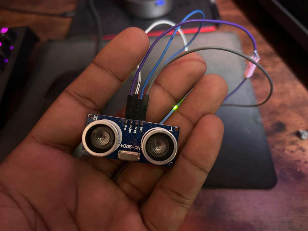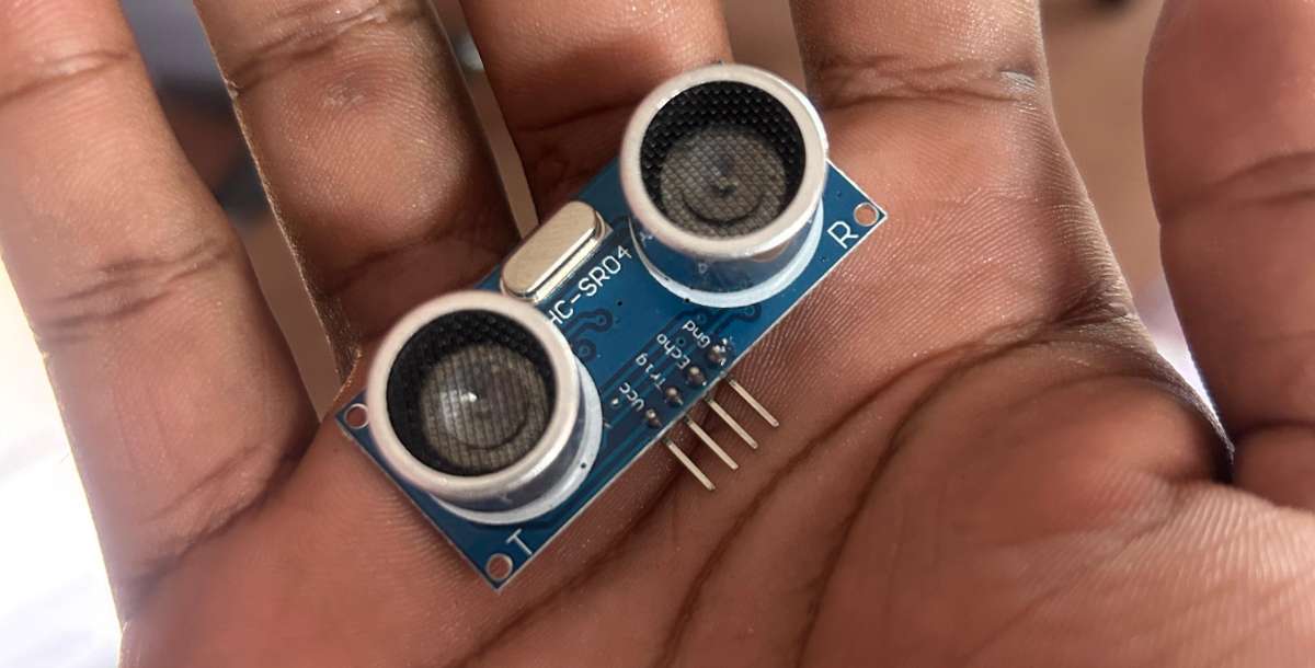The Ultrasonic Sensor measures the distance from the robotic arm to the detected object. Provides crucial coordinate data that the Arduino uses for precise kinematics control.