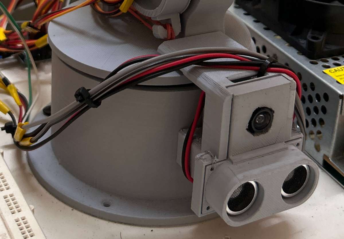 Assemble the housing of the ESP32-CAM module and Ultrasonic sensor, and mount it on the Robotic Arm.