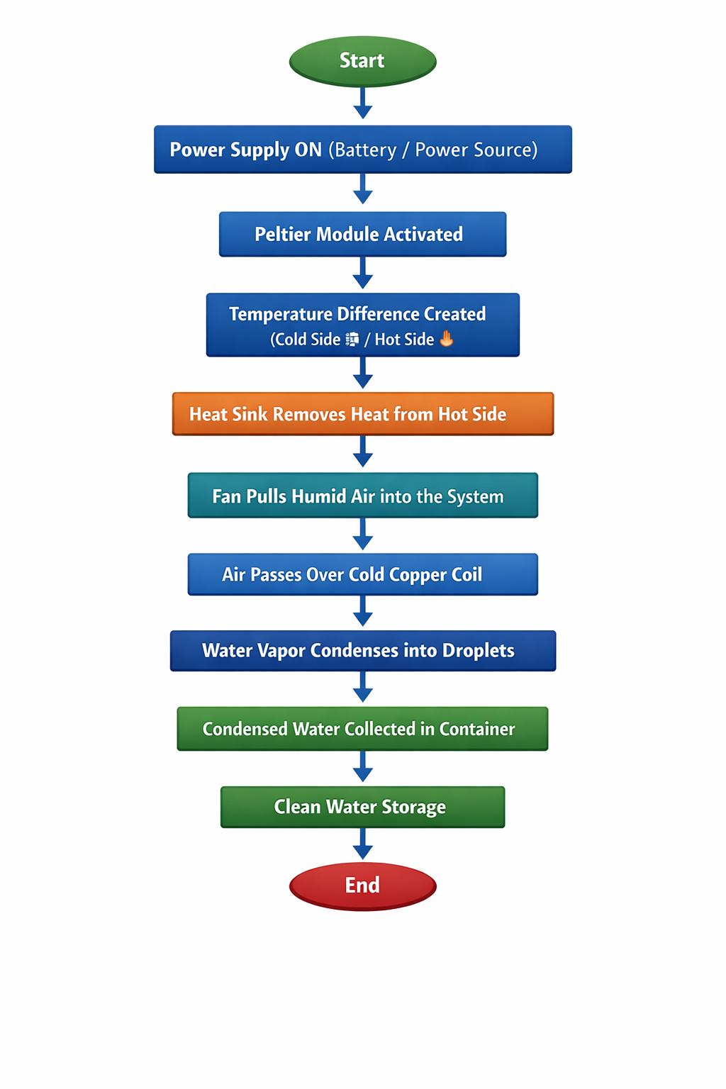 AKASH GANGA demonstrates an innovative and sustainable approach to addressing water scarcity by extracting potable water directly from atmospheric humidity using condensation technology. By utilizing a thermoelectric Peltier module, cooling system, and airflow mechanism, the device efficiently converts moisture present in the air into usable water. The system is portable, low-cost, and environmentally friendly, making it suitable for use in remote areas, disaster-affected regions, and places with limited access to clean drinking water. With further improvements such as solar power integration and filtration systems, AKASH GANGA has the potential to become a practical solution for sustainable water generation and contribute to solving global water challenges.